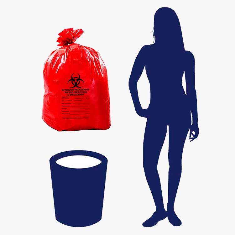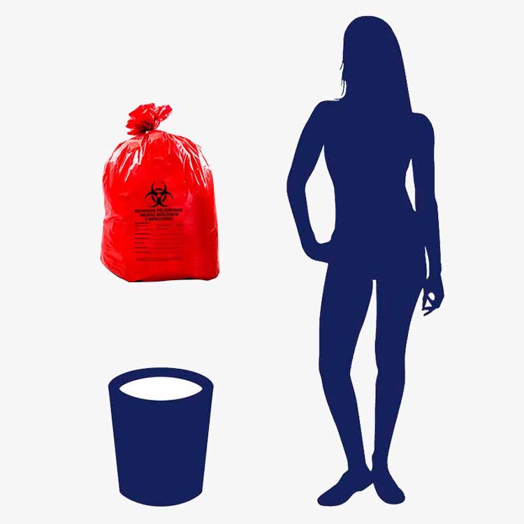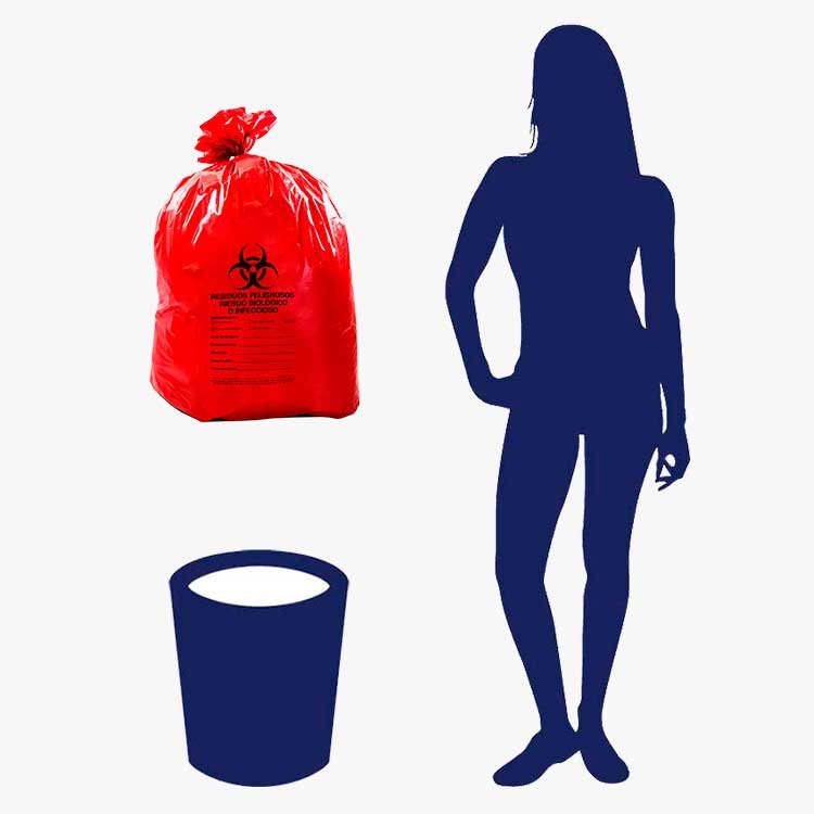 Fabricadas en polietileno de alta densidad (PEAD) color rojo, son resistentes, duraderas y cuentan con impresión de advertencia de riesgo biológico en su superficie.